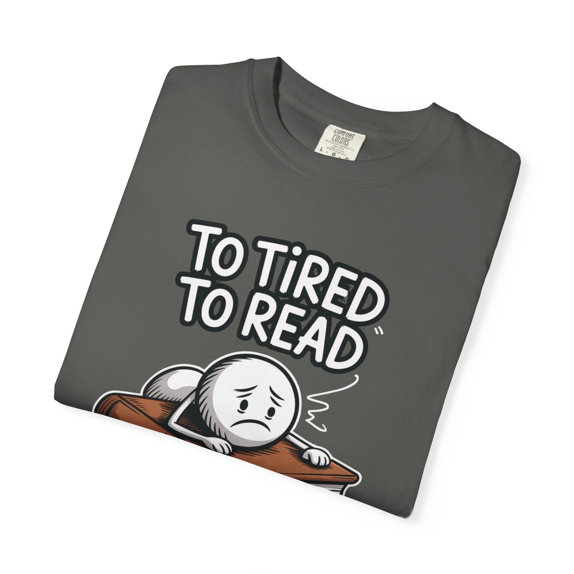 To Tired To Read T-Shirt — Funny Book Lover Tee with Sleepy Character